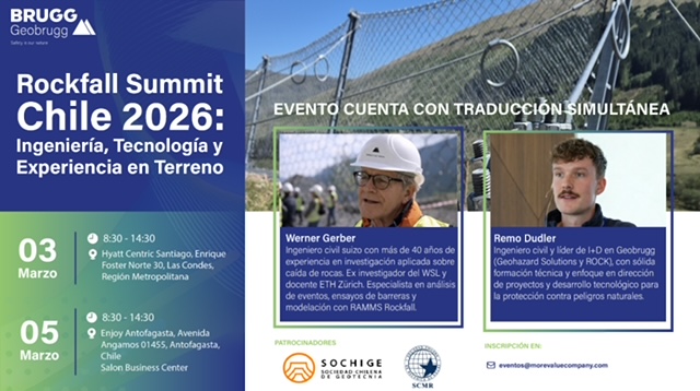 1ra edicion «Rockfall Summit Chile 2026», organiza socio empresa GEOBRUGG, enfocado en Ingeniería, Tecnología y Experiencia en Terreno. FECHAS: