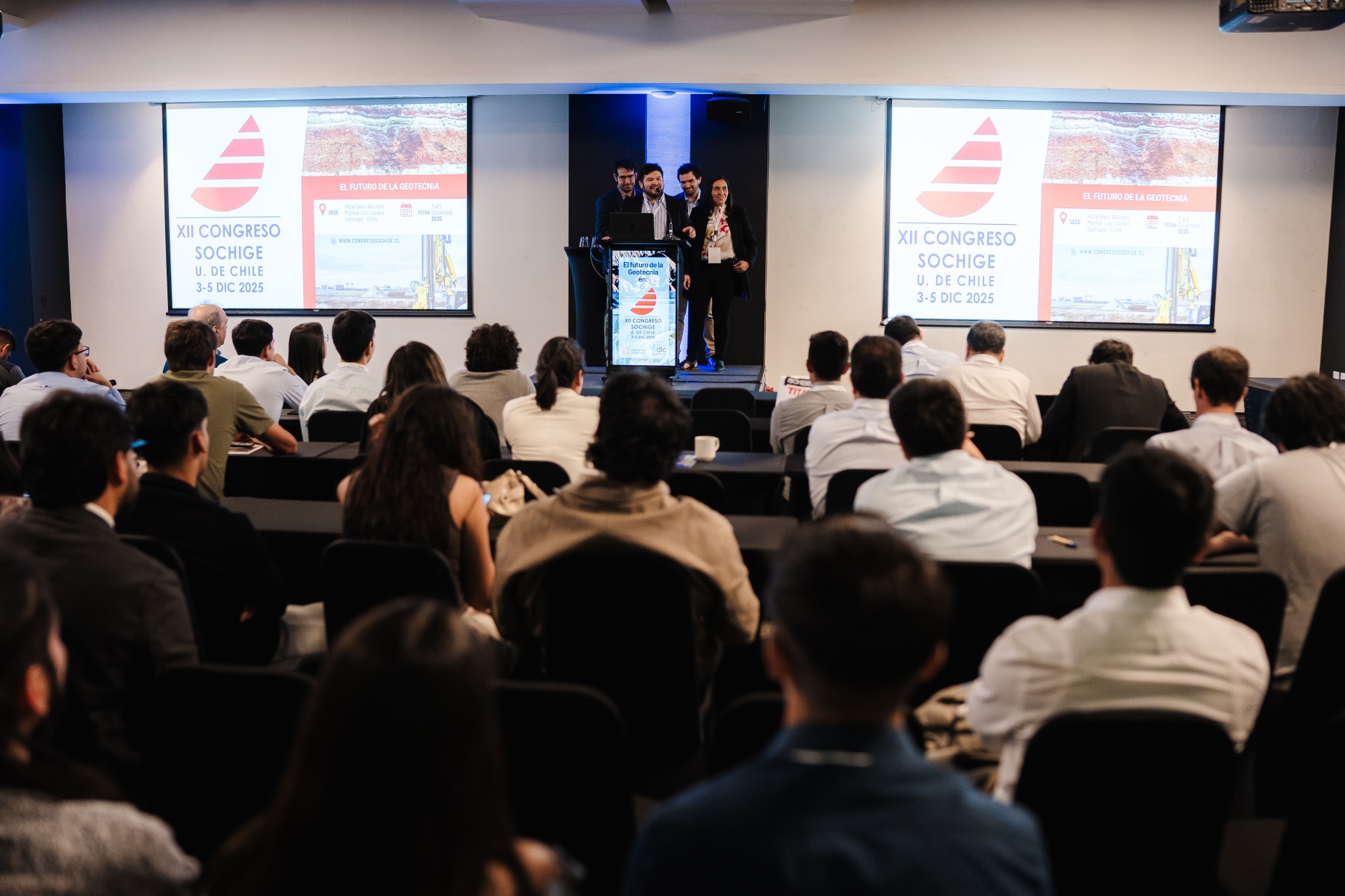 El evento congregó a más de 300 asistentes, entre profesionales, académicos, investigadores y representantes de la industria, consolidándose como el evento geotécnico más importante del año a nivel nacional. A lo largo de tres intensas jornadas se desarrollaron más de 100 presentaciones de alto nivel, abordando los principales desafíos actuales y futuros de la disciplina.