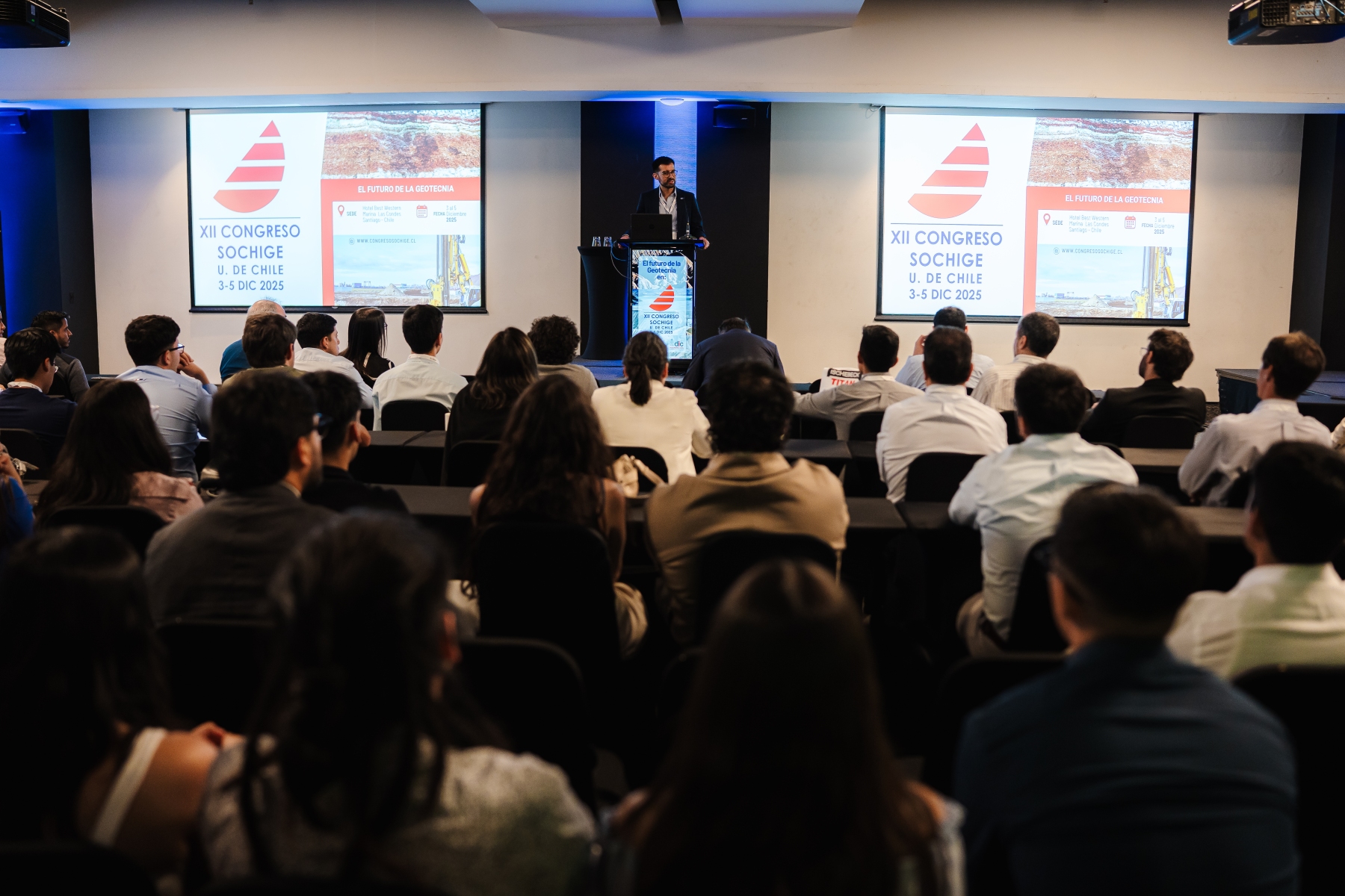 Entre el 3 y el 5 de diciembre de 2025, el Hotel Best Western Marina Las Condes, Santiago, fue el punto de encuentro de la comunidad geotécnica nacional e internacional con la realización del XII Congreso Chileno de Geotecnia, organizado por la Sociedad Chilena de Geotecnia (SOCHIGE) y el Departamento de Ingeniería Civil de la Universidad de Chile.