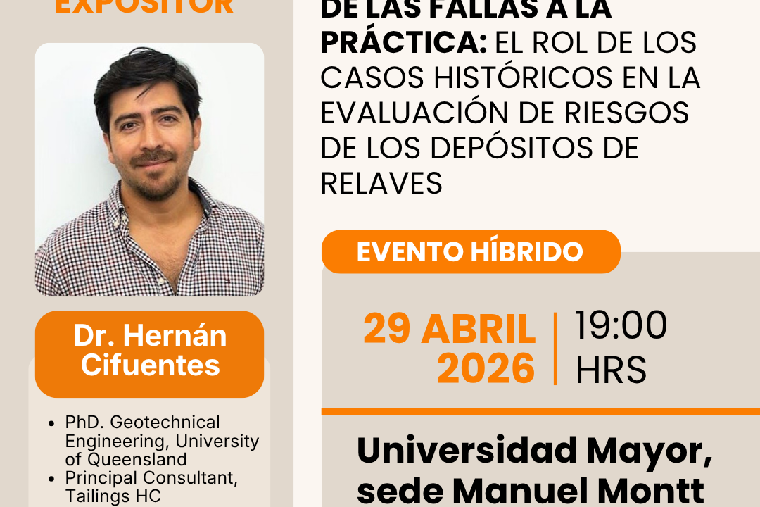 Este es el foco de nuestra próxima charla, donde el Dr. Hernán Cifuentes, PhD., Adjunct Associate Professor de la University of Queensland y Principal Consultant en Tailings HC, compartirá su experiencia y cómo estos aprendizajes se están incorporando hoy en la práctica profesional.